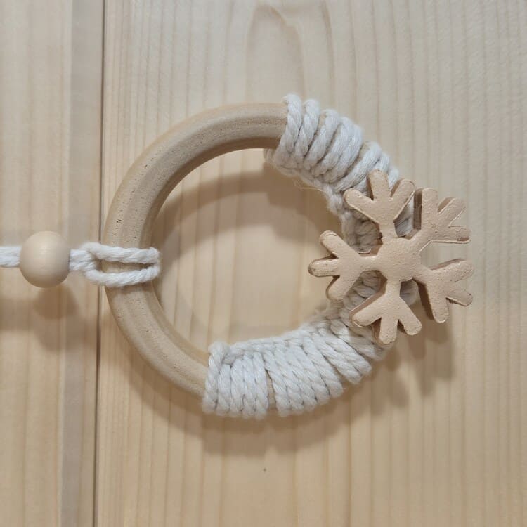 Suspensions de Noël en macramé faites main, disponibles en plusieurs couleurs et modèles. À accrocher au sapin, aux fenêtres ou aux poignées pour une décoration bohème, douce et artisanale. Chaque pièce est unique et réalisée dans des fibres naturelles.
