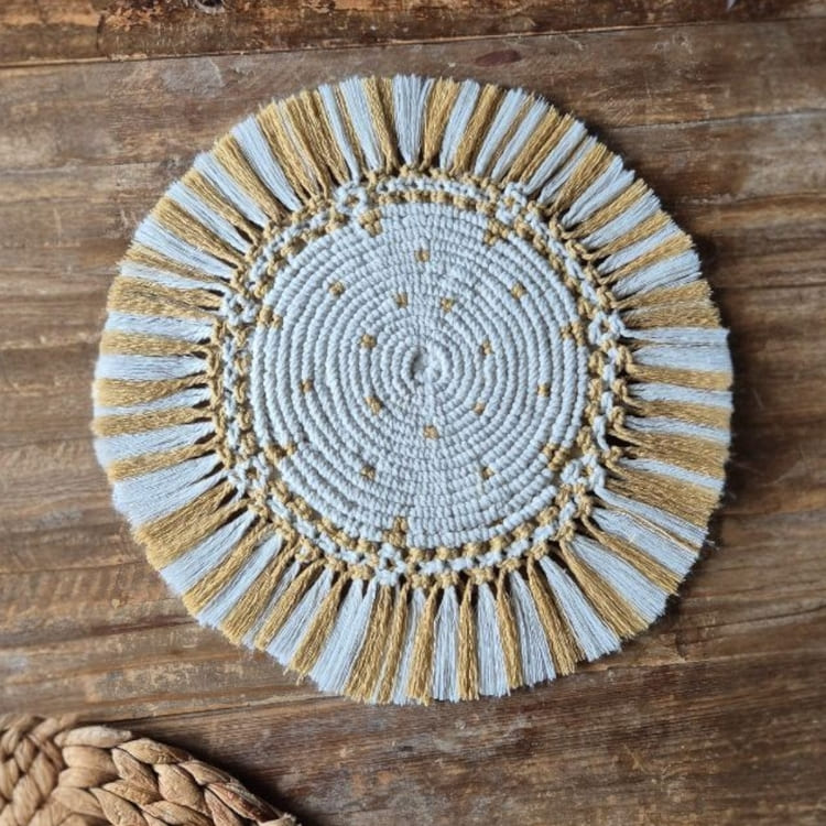 A fixer au mur ou comme napperon ou centre de table, ce soleil dans votre intérieur, invite la joie au quotidien, même les jours gris !