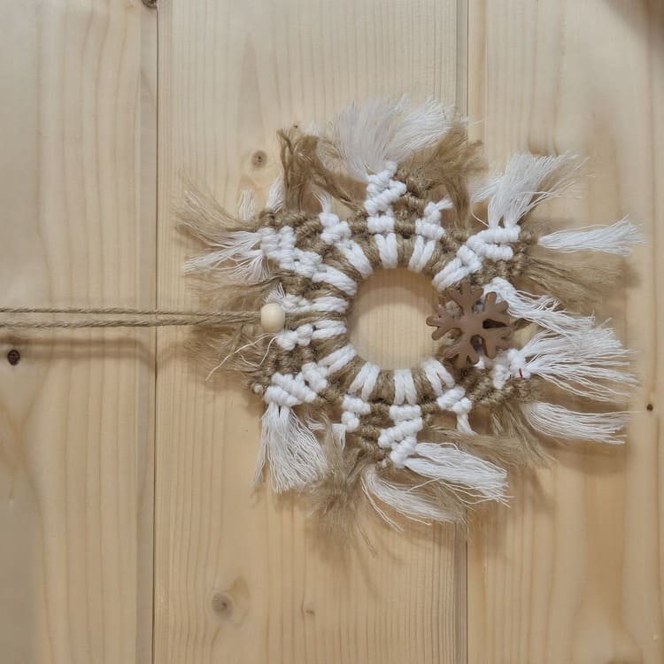 À accrocher au sapin, aux fenêtres ou aux poignées pour une décoration bohème, douce et artisanale. Chaque pièce est unique et réalisée dans des fibres naturelles.